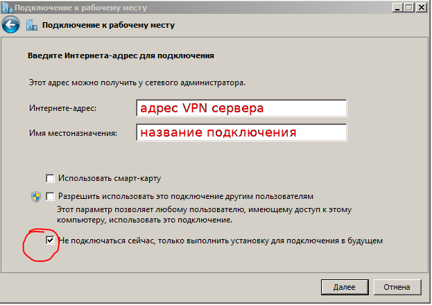 вписать в поле 'адрес VPN сервера':